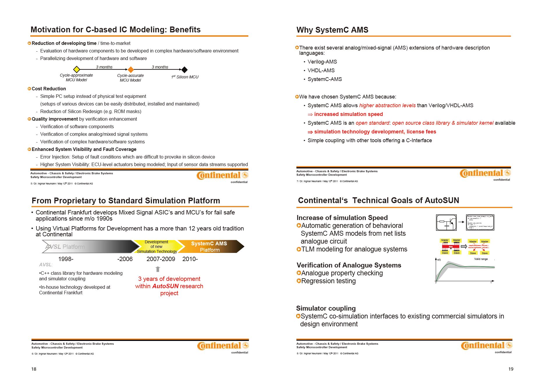 ドイツや欧州では、次世代のSimulation環境の構築するために力を合わせて標準化に取り込んでいるのに、日本の自動車業界はは一昔の標準に縛られて、自ら開発標準化しようとしません。ここまでVHDL-AMSで今まさに…というのが日本ですが、もうヨーロッパはSystemC AMSなのです。