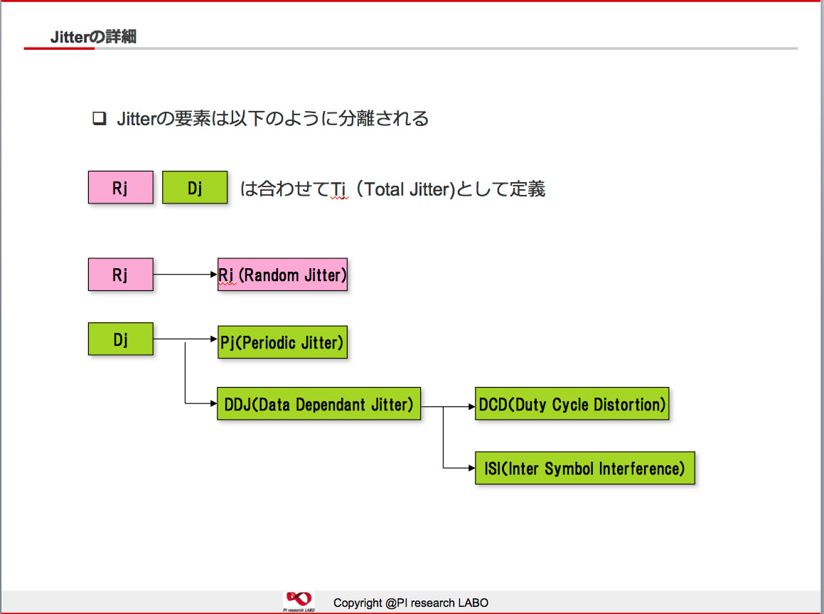 Rj/Djはそれぞれ、Random Jitter/Deterministic Jitterと呼ばれる物です。