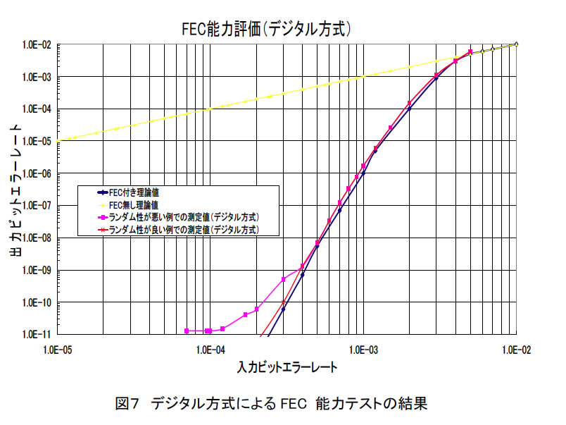 FECというのは、ERROR補正のデータを挿入するのですが、従来Gaussian分布のノイズを挿入してましたが、Random性が悪い為に(つまりGaussian≠Random)ERROR補正効果が減少するとデータ(以下図)が掲載されています。Anritsuでは、Random性に着目して、Poisson分布を持つ(本当のRandom性を持つと言う事ですね)ノイズ発生器をITU-Tに提案して基準として採択されております。