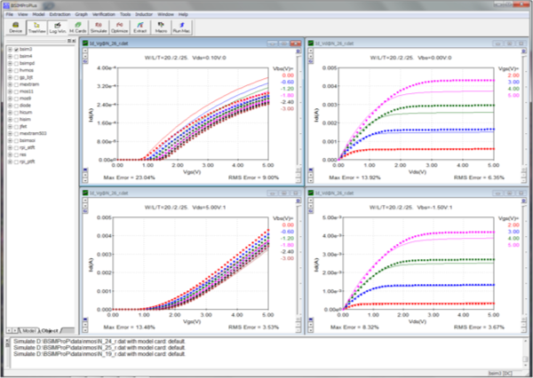 .弊社では、半導体のMOS/Diode等のデバイスのモデリング(パラメータ抽出)は行わないのですが、何故かパワーデバイスに関しては、モデリングを行っています。昨年からIGBTとSiCのモデルの作成をしておりまして、何故だが、このところの引き合いはパワーデバイスばかりです。通常のCMOSのモデルは、モデル作成&抽出をしないのは、あくまで技術的な事よりもリソースが無い為ですので、ご理解よろしくお願いいたします。ただ長い期間であれば、余力もありますので要相談です。アナログ回路の動作も理解出来ないモデリング会社さんですとデータシートや測定&抽出しか出来ませんので…。 弊社では、以下Bsimproを用いてparameter抽出を行います。
