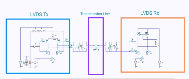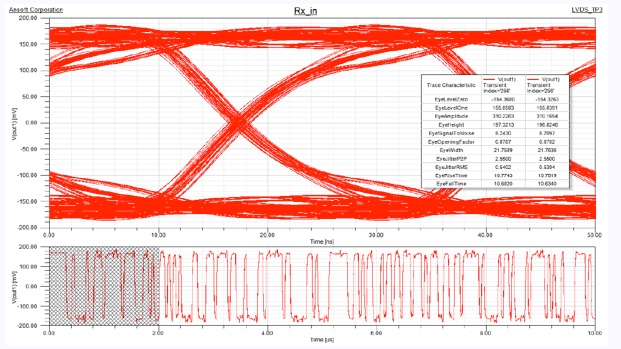 以下に、以前私が以前解析しておりました、過渡ノイズの解析の高速伝送での解析例を 載せておきます。LVDSのICを使用した15mの伝送距離で、半導体のノイズを込みで Simulationをした例題です。