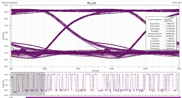 入力にはPRBS2^9-1を入れています。 続いて半導体のノイズを加えた通常:transient noise解析した結果です。